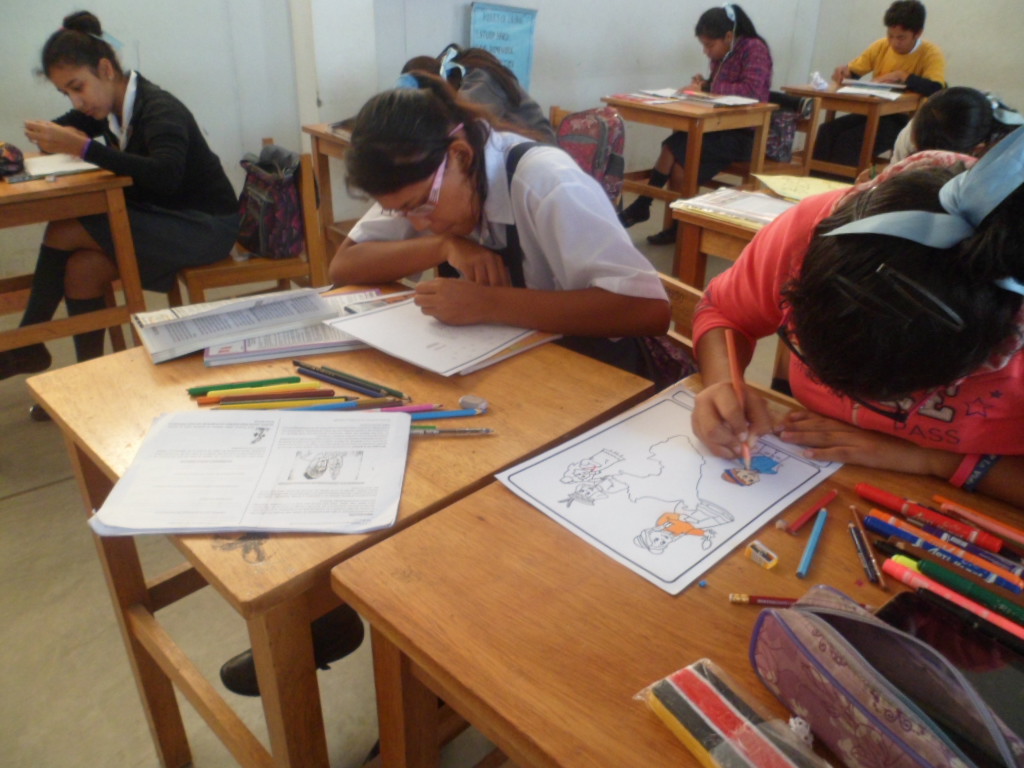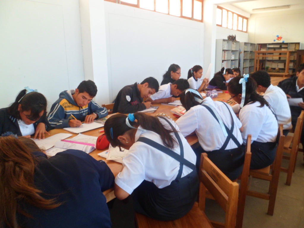 Alumnos del Quinto Año "A" y "B" de la I.E. José Pardo y Barreda participando del Concurso de dibujo: Quinua, maravilloso grano sagrado.